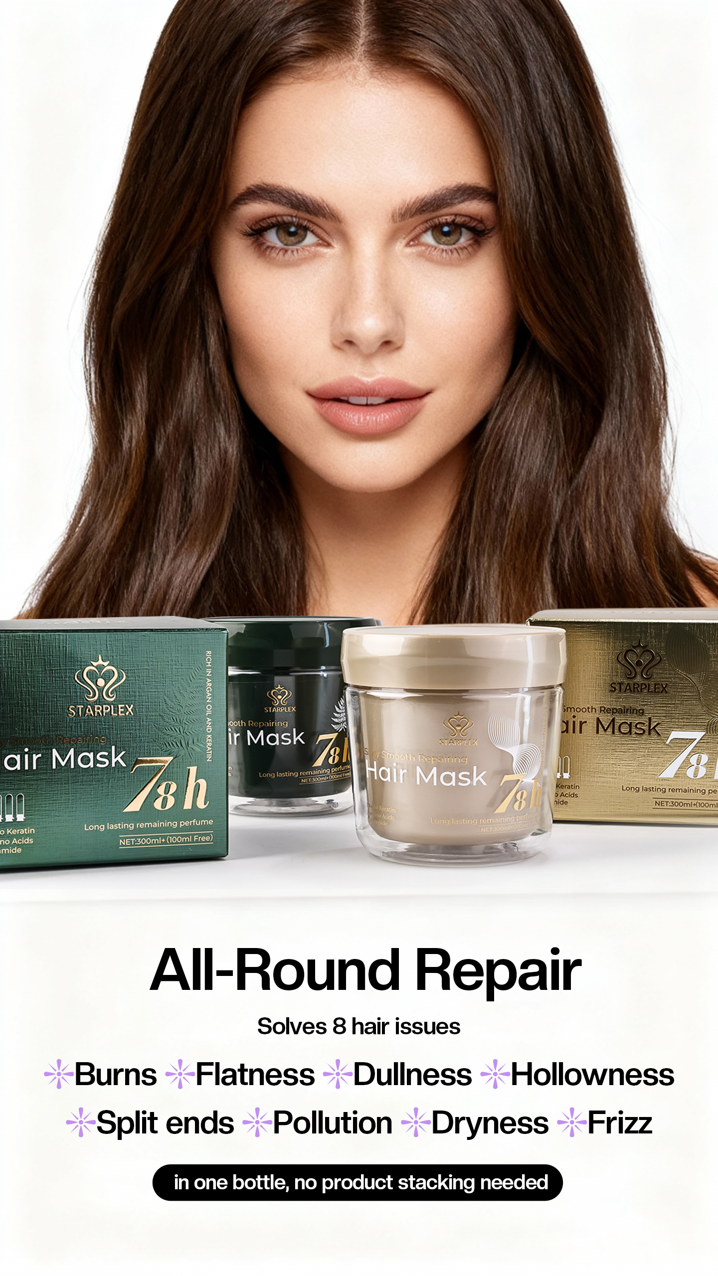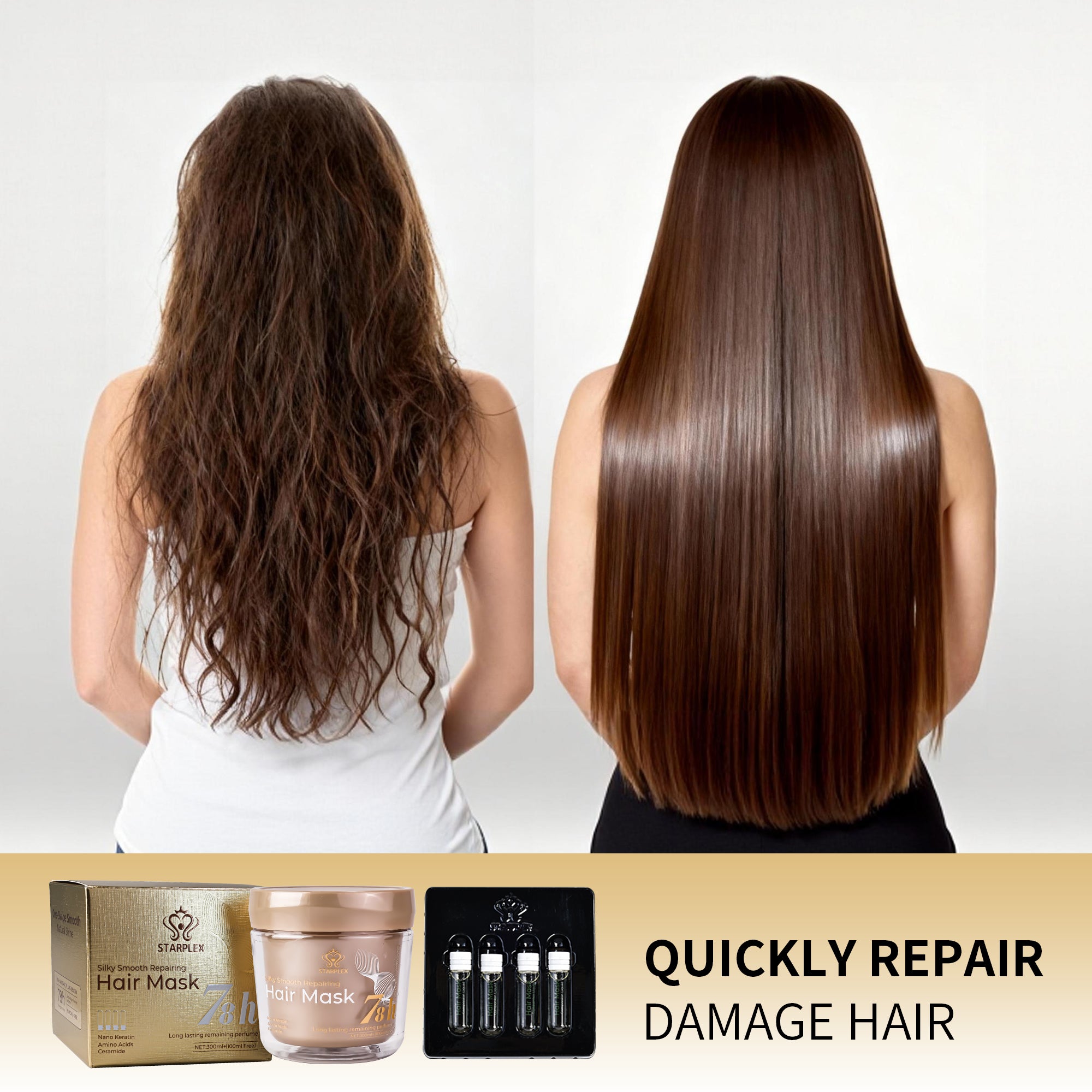 Targets weak, brittle, or damaged hair—fills in hair fiber gaps and reinforces hair structure. Fixes "breakage while combing" issues, restoring hair to a healthy, strong texture.